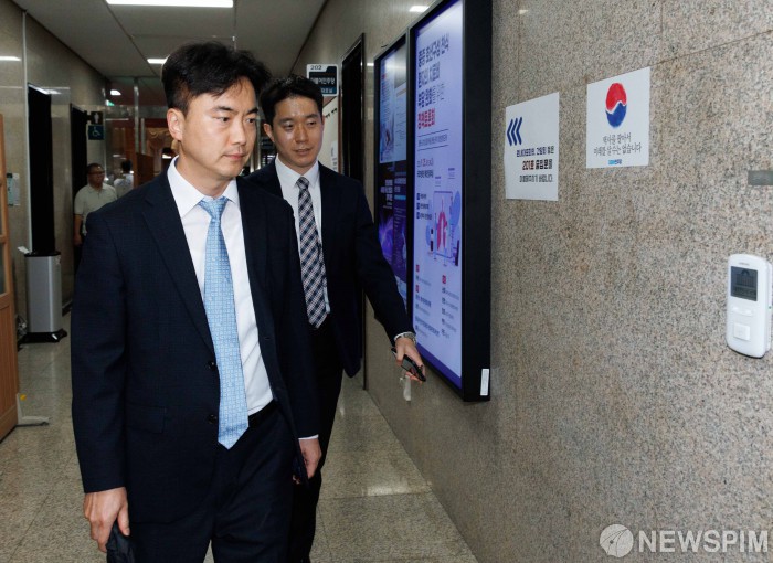 [서울=뉴스핌] 윤창빈 기자 = 12·3 비상계엄과 관련한 수사를 진행중인 조은석 내란 특별검사팀이 17일 오후 서울 여의도 국회에서 김병기 더불어민주당 원내대표의 참고인 조사를 위해 원내대표실로 들어서고 있다. 특검팀은 김 원내대표를 상대로 계엄 당시 국회 경내·외 상황을 파악할 것으로 보인다. 2025.09.17 pangbin@newspim.com