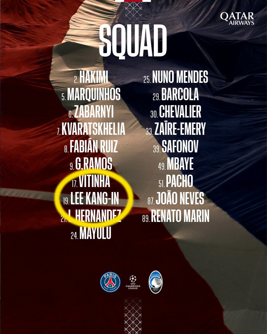 엔리케 감독은 아탈란타전을 앞둔 기자회견에서 “이강인은 스쿼드에 포함될 것이고 확실히 출전 가능하다”고 말해 공식적으로 출전 가능성을 말했다.