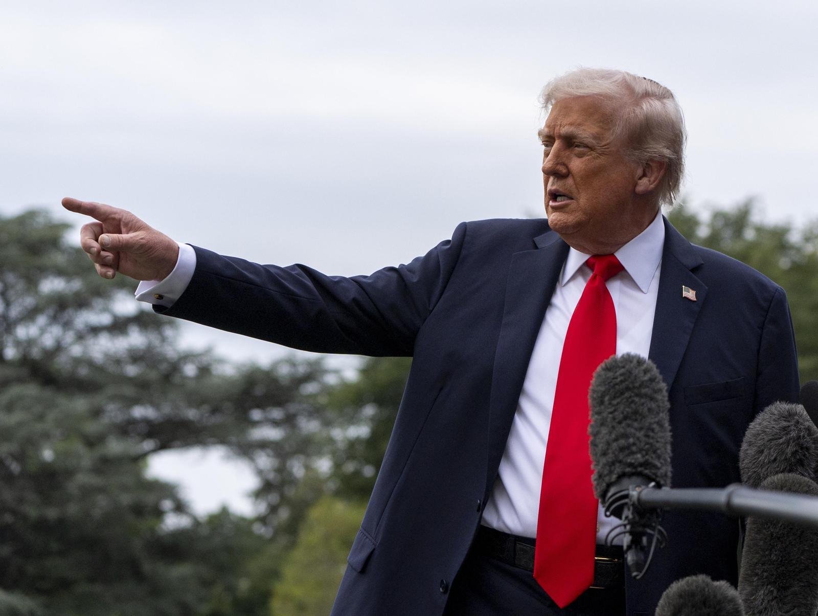 도널드 트럼프 미국 대통령이 16일(현지 시간) 영국 국빈 방문에 앞서 백악관에서 기자들에게 이야기하고 있다. 트럼프 대통령은 이날 반도체와 의약품에 자동차(25%)보다 높은 관세를 부과할 수 있다고 말했다. 워싱턴=AP 뉴시스 |