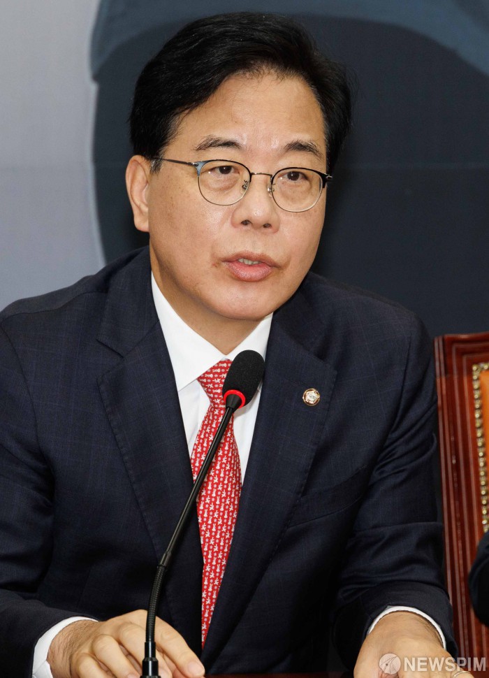 [서울=뉴스핌] 윤창빈 기자 = 송언석 국민의힘 원내대표가 18일 오전 서울 여의도 국회에서 열린 최고위원회의에서 모두발언을 하고 있다. 2025.09.18 pangbin@newspim.com |