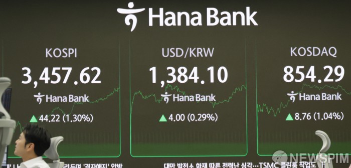 미 금리 인하에 코스피 반등하며 장중 3457.62 거래