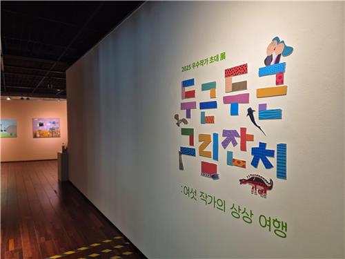 (울산=연합뉴스) 장영은 기자 = HD아트센터 미술관은 '두근두근 그림잔치: 여섯 작가의 상상 여행'을 부제로 '2025 우수작가 초대전'을 개막했다고 18일 밝혔다.