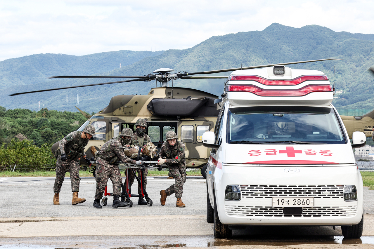 이번 훈련은 한미 양측이 의무·후송자산들을 활용해 유사시 대량전상자를 현장에서 응급 처치하고 후송하기 위한 협조·지원체계를 검증하고 숙달하기 위해 실시했다.