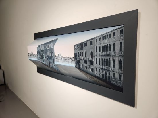 패트릭 휴즈의 작품은 피라미드 형태로 튀어나온 면 위에 회화 작업을 한 부조 회화다. 높낮이 차이가 마치 그림이 움직이는 듯한 착시효과를 유발한다. 서믿음 기자 |