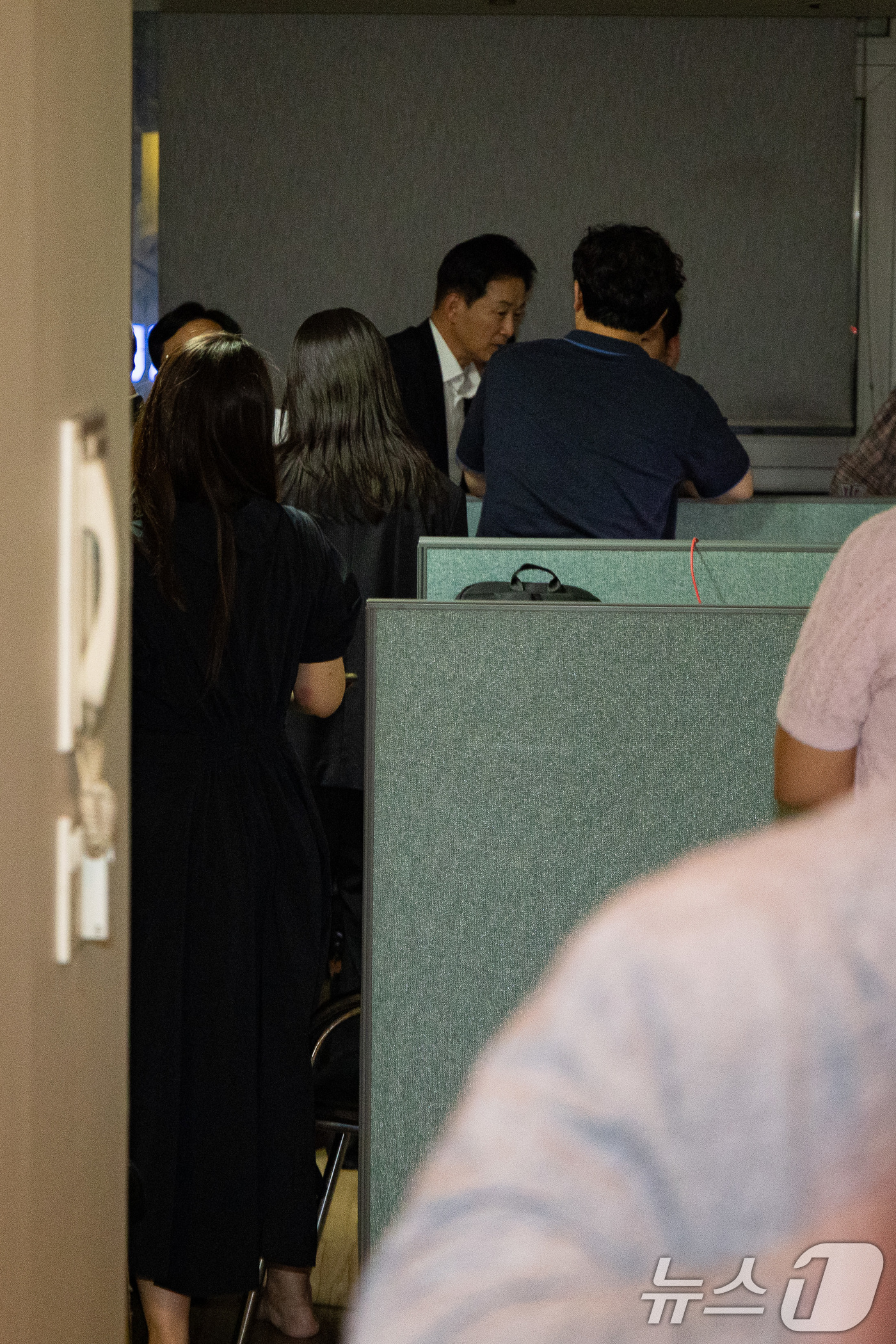 (서울=뉴스1) 유승관 기자 = 18일 서울 여의도 국민의힘 중앙당사 인근 당원명부 관리 데이터베이스(DB) 업체 사무실에서 김건희 특검팀(민중기 특별검사)이 압수수색 강제집행을 하고 있다. 2025.9.18/뉴스1