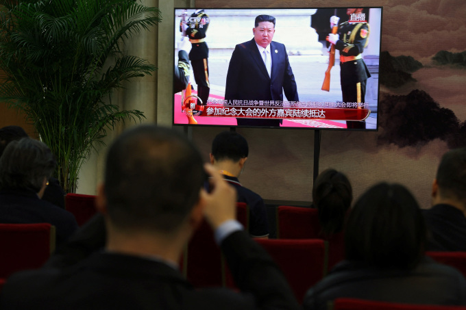 9월 3일 중국 베이징에서 열린 제2차 세계대전 종전 80주년 기념 군사 퍼레이드에 참석하기 위해 도착한 김정은 북한 국무위원장의 모습이 언론 관계자 대기실에 비춰지고 있다. [사진=로이터 뉴스핌] 2025.09.03 kwonjiun@newspim.com |