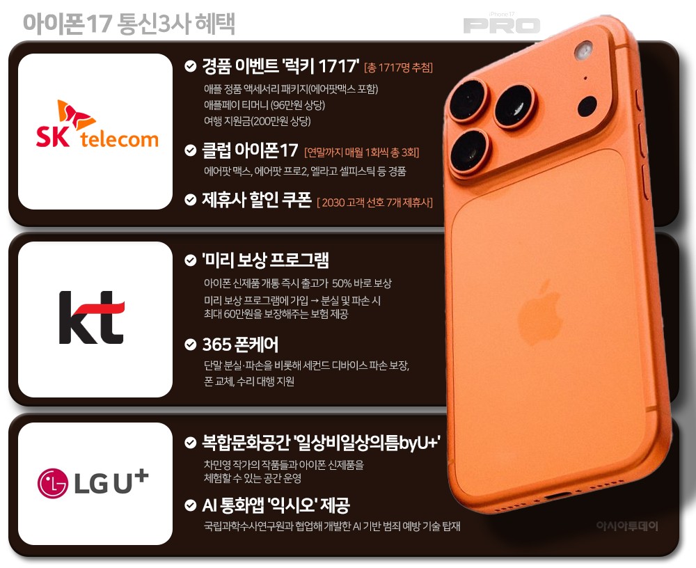 아시아투데이 연찬모 기자 = 통신3사가 19일 애플 '아이폰17' 시리즈 개통에 돌입했다.