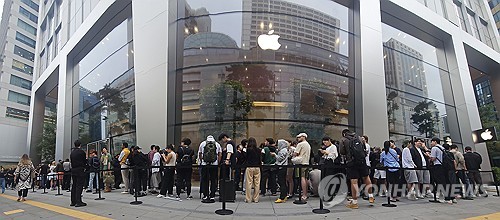 명동 애플스토어 100여명 오픈런 대기