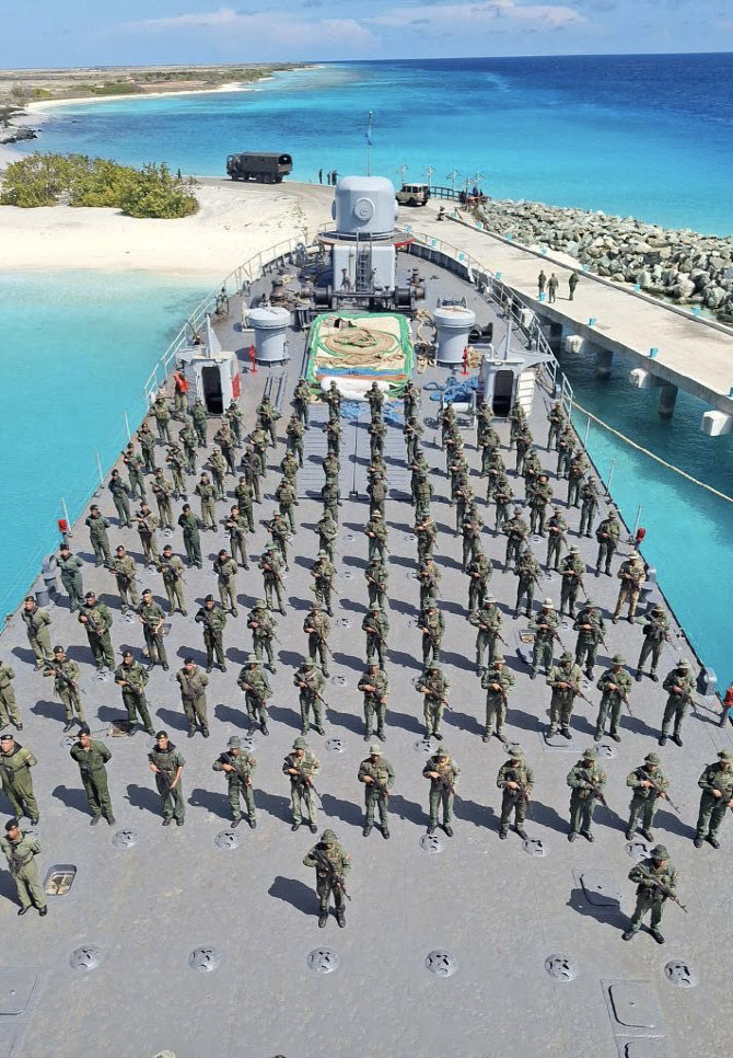 그는 또 “무장 드론, 감시 드론, 잠수 드론 등을 활용한 방공 체계가 배치되고, 전자전 작전도 수행할 것”이라고 덧붙였다. 상륙정이 병력을 해안에 투입하는 장면과 전투기가 해상 상공을 비행하는 영상도 함께 공개됐다.