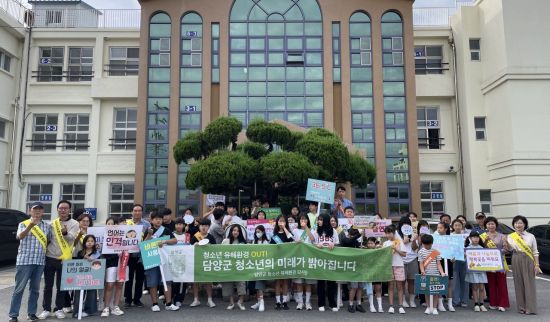 이날 캠페인은 담양군을 비롯해 경찰서, 교육청, 청소년유해환경감시단, 청소년상담복지센터 등 관계기관과 민간 단체가 참여해 담양남초등학교 앞에서 캠페인을 진행했다.