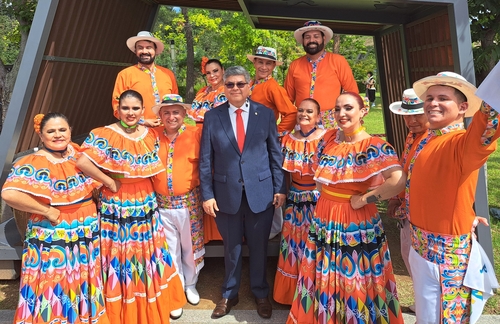 주한 코스타리카 대사(가운데)와 공연단 |
