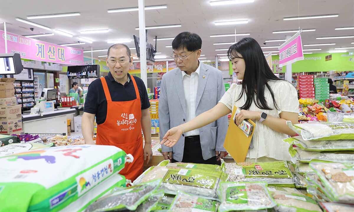안형준 통계청장이 15일 대전 동구 전통시장에서 최근 가격이 오른 쌀 품목의 일일 물가 조사를 실시하고 있다. 통계청 제공 |