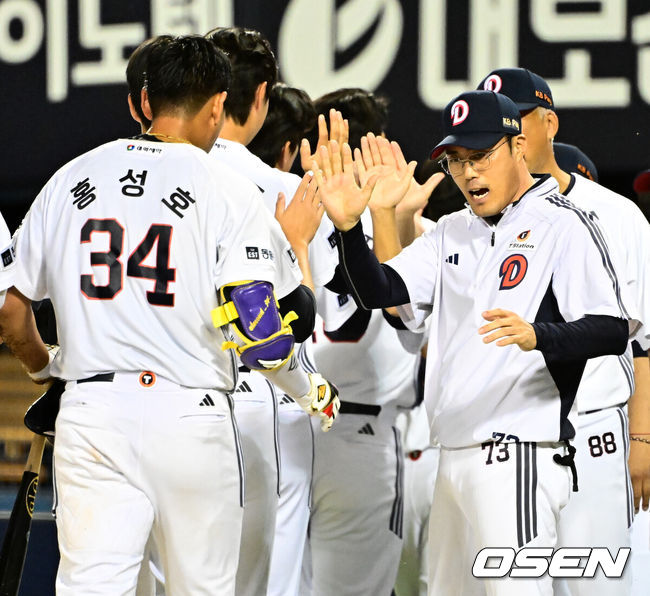 조성환 대행은 “내가 감독대행으로 부임하고 첫 승을 거둔 경기와 비슷했다. 그 때도 김동준이 안타를 쳤지만 최원준이 주자를 홈보살로 잡아냈다. 그리고 김민석이 끝내기 안타를 날렸다. 그런 장면을 한 번 더 볼 수 있을까 싶었는데 또 한 번 보게 됐다”며 웃었다.