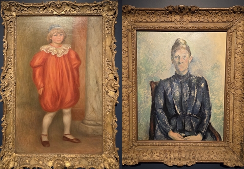총 6개 섹션으로 구성된 전시는 첫 장면부터 두 사람의 대비되는 화풍을 정면으로 제시한다. 세잔의 인물화인 '세잔 부인의 초상'과 르누아르의 인물화 '광대 옷을 입은 클로드 르누아르'를 나란히 걸었다.