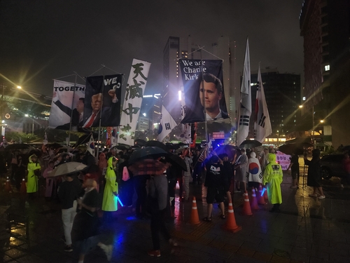 행진에 참여한 100여명은 태극기와 성조기를 들고 "부정선거 중국개입", "이재명을 재판하라", "윤 대통령 석방하라" 등 구호를 외쳤다.