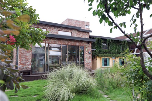 붉은 벽돌로 지어진 외관은 서학예술마을과 잘 어울려 담쟁이덩굴이 얼기설기 얽힌 예쁜 북 카페를 연상케 한다.