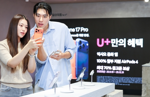 (서울=연합뉴스) 박형빈 기자 = LG유플러스[032640]는 애플의 신제품 아이폰 17 시리즈를 한눈에 볼 수 있는 팝업 전시를 서울 강남대로 복합문화공간 '일상비일상의틈 by U+'에서 진행한다고 21일 밝혔다.