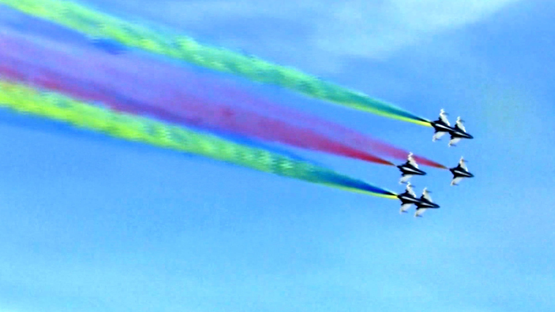 빨강, 파랑, 노랑 형형색색의 연기가 하늘을 수놓고, 커다란 하트 모양 연기도 만듭니다.