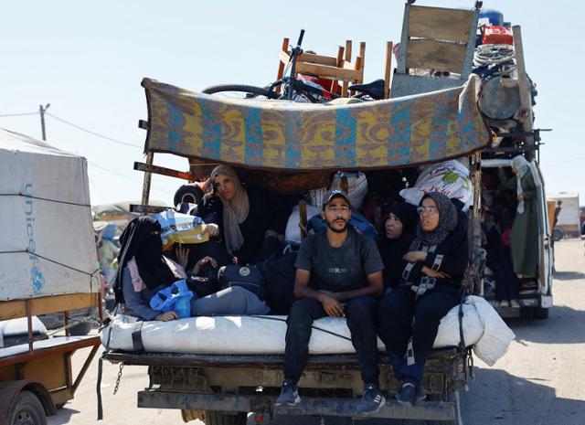 이스라엘의 지상전 개시로 인해 피난길에 오른 가자시티 주민들이 21일 가자지구 남쪽을 향해 이동하고 있다. 가자시티=로이터 연합뉴스 |