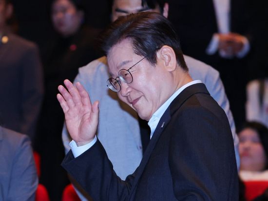 이재명 대통령이 20일 부산 해운대구 영화의전당에서 부산국제영화제 공식상영작 '극장의 시간들' 관람 전 관객에게 손을 흔들고 있다. 연합뉴스. |