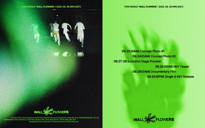 해당 이미지에는 새 타이틀곡 제목 'Wall Flowers'와 함께 다양한 콘텐츠 플랜이 담겨 있어 뜨거운 관심을 모았다. 특히 이번 타이틀곡 'Wall Flowers'의 작사가 라인업에 나태주 시인의 이름이 올라가면서, 음악 팬들 사이에서 곡에 대한 궁금증이 커지고 있다. 짙은 감성과 시적인 표현이 더해져 파우만의 서정적인 세계관을 한층 풍성하게 만들 것으로 기대된다.