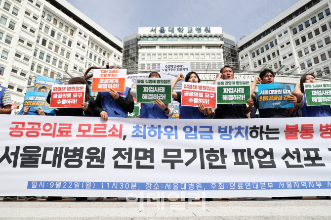 서울대병원노조는 24일부터 무기한 전면파업에 돌입한다고 밝혔다.