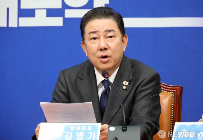 [서울=뉴스핌] 정일구 기자 = 김병기 더불어민주당 원내대표가 22일 오후 서울 여의도 국회에서 열린 최고위원회의에서 모두발언을 하고 있다. 2025.09.22 mironj19@newspim.com