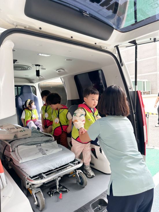 이번 견학은 ▲병원 업무 소개 ▲감염 예방을 위한 손 씻기 교육 ▲운동치료 소개 및 체험 ▲의사 가운 착용 체험 ▲구급차량 탑승 등 다양한 체험 활동으로 구성됐다.