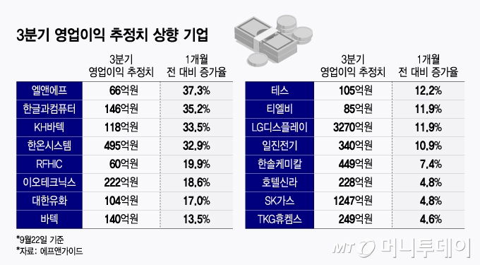 3분기 영업이익 추정치 상향 기업/그래픽=윤선정 |