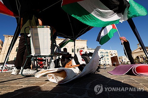 21일(현지시간) 몰타 총리실 밖에서 열린 친팔레스타인 시위. 몰타는 팔레스타인을 국가로 공식 인정할 계획이라고 밝혔다. |