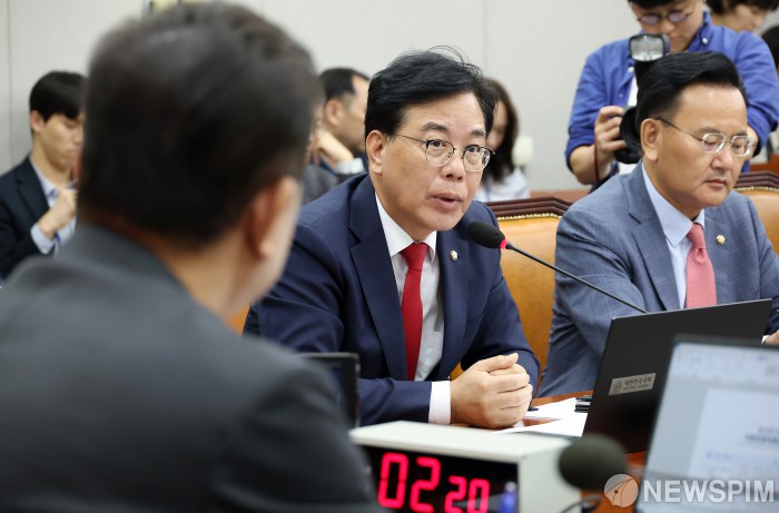 [서울=뉴스핌] 정일구 기자 = 송언석 국민의힘 원내대표가 22일 오후 서울 여의도 국회에서 열린 국회운영위원회 전체회의에서 발언하고 있다. 2025.09.22 mironj19@newspim.com