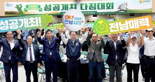 (무안=연합뉴스) 형민우 기자 = 전남도는 22일 도청에서 오는 10월 16일 해남에서 열릴 'LPGA BMW 레이디스 챔피언십' 성공개최를 위한 다짐대회를 열었다.