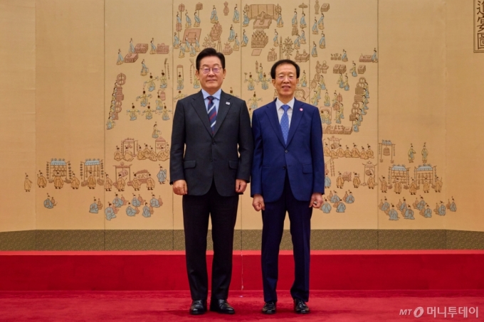 (서울=뉴스1) 이재명 기자 = 이재명 대통령이 15일 서울 용산 대통령실 청사에서 열린 임명장 수여식에서 이석연 국민통합위원장에게 위촉장을 수여한 후 기념촬영을 하고 있다. (대통령실 제공. 재판매 및 DB 금지) 2025.9.15/뉴스1 Copyright (C) 뉴스1. All rights reserved. 무단 전재 및 재배포, AI학습 이용 금지. /사진=(서울=뉴스1) 이재명 기자 |