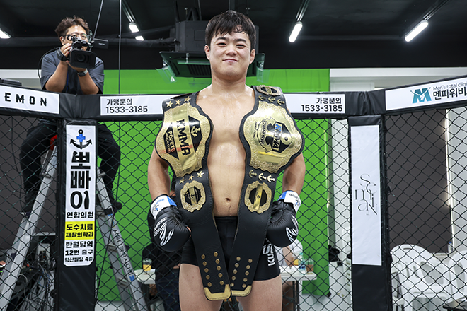 도전자 김민규(29, 서면팀매드)는 미들급 챔피언 고영현(24, 헤이브로MMA)의 타이틀 1차 방어를 무산시키고 왕좌를 뺏었다. 기존의 웰터급 챔피언에 더해 두 체급 정상을 차지했다.