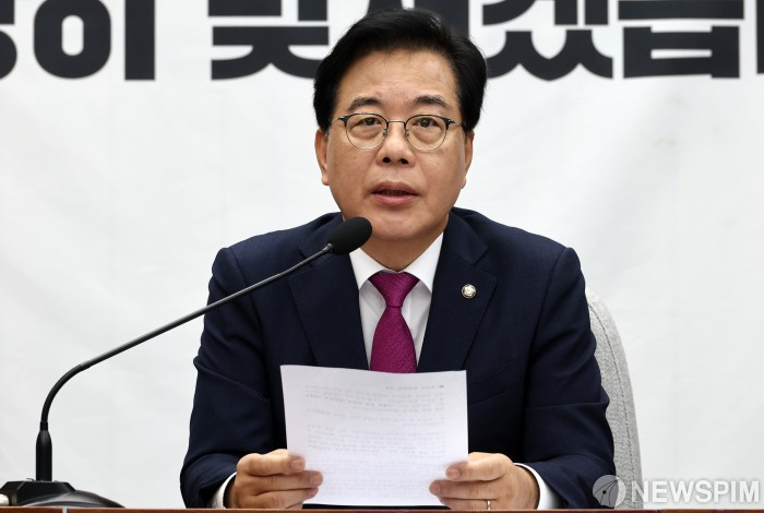 [서울=뉴스핌] 최지환 기자 = 송언석 국민의힘 원내대표가 23일 오전 서울 여의도 국회에서 열린 원내대책회의에서 모두발언을 하고 있다. 2025.09.23 choipix16@newspim.com