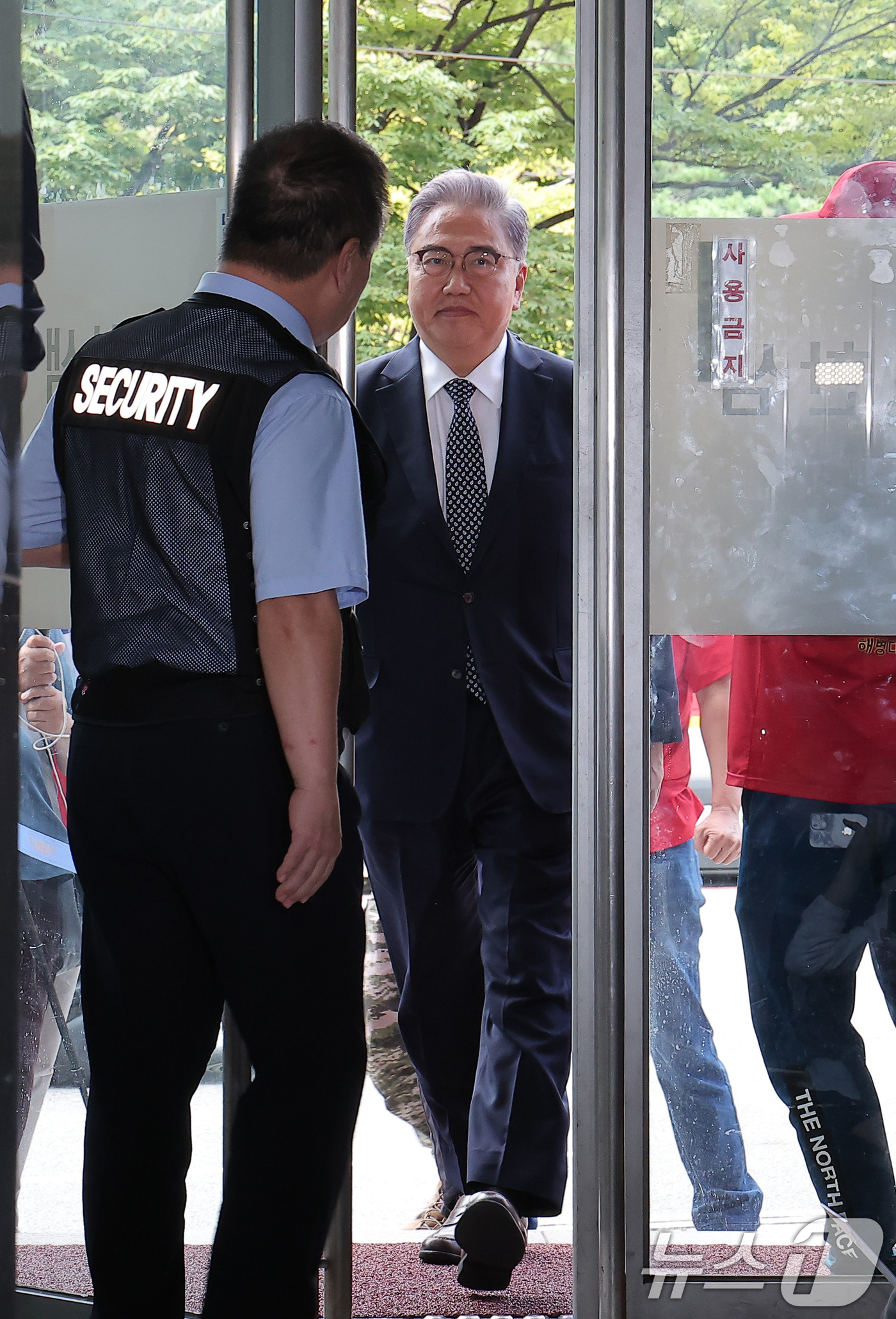 (서울=뉴스1) 김성진 기자 = 박진 전 외교부 장관이 23일 서울 서초구 순직 해병 특검(특별검사 이명현) 사무실에 참고인 조사를 받기 위해 출석하고 있다. 2025.9.23/뉴스1