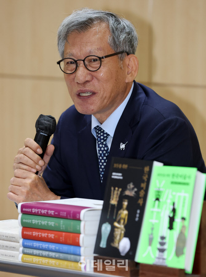 [이데일리 방인권 기자] 미술사학자 유홍준 국립중앙박물관 관장이 23일 서울 마포구 서교동 창비서교빌딩에서 열린 '모두를 위한 한국미술사'·'외국인을 위한 한국 미술사' 출간 기념 기자간담회에서 발언을 하고 있다.