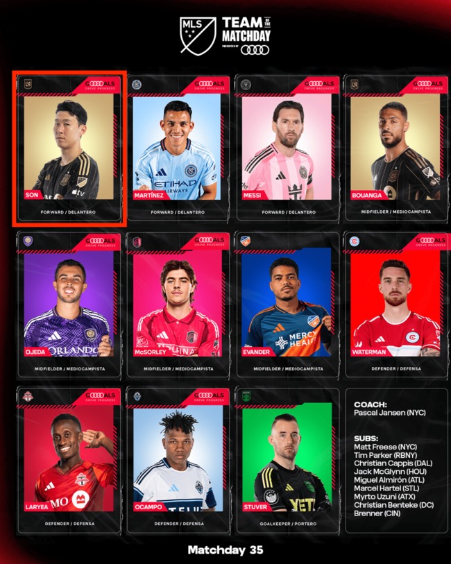 MLS는 23일(이하 한국시간) 공식 홈페이지를 통해 MLS 35라운드 이주의 팀(Team of the Matchday)을 공개했다. 여기에 손흥민이 이름을 올렸다.