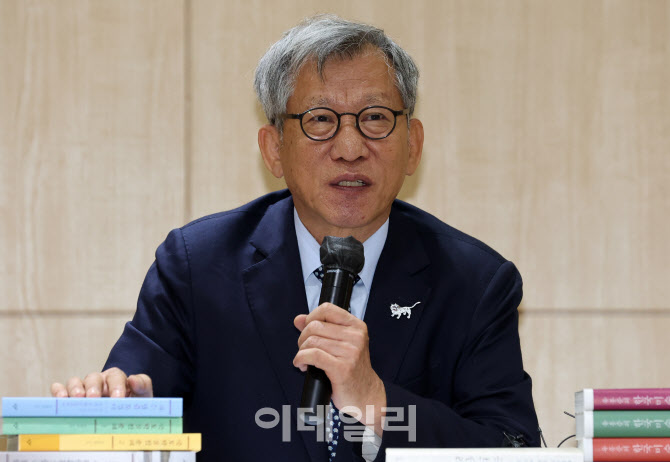 유홍준 국립중앙박물관장이 23일 서울 마포구 창비서교빌딩에서 열린 ‘모두를 위한 한국미술사’·‘외국인을 위한 한국 미술사’ 출간 기념 기자간담회에서 발언을 하고 있다. (사진=방인권 기자) |