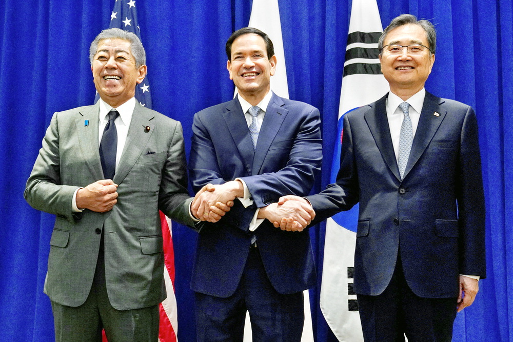 한·미·일 외교 수장이 이재명 정부 출범 이후 첫 3자 회의를 한 뒤 발표한 공동성명에서 '북한 비핵화' 원칙을 재확인했다. 김정은 북한 국무위원장이 미국과 국제사회를 향해 '비핵화 절대 불가' 입장을 밝힌 지 하루 만이다.