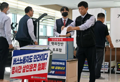 협의회는 23일 오전 9시부터 오후 3시까지 소속 버스업체별 쟁의행위 찬반투표를 진행한 결과, 전체 조합원 1만9384명 중 90.6%인 1만7576명이 참여해 97.4%(1만7207명)가 찬성했다고 밝혔다.