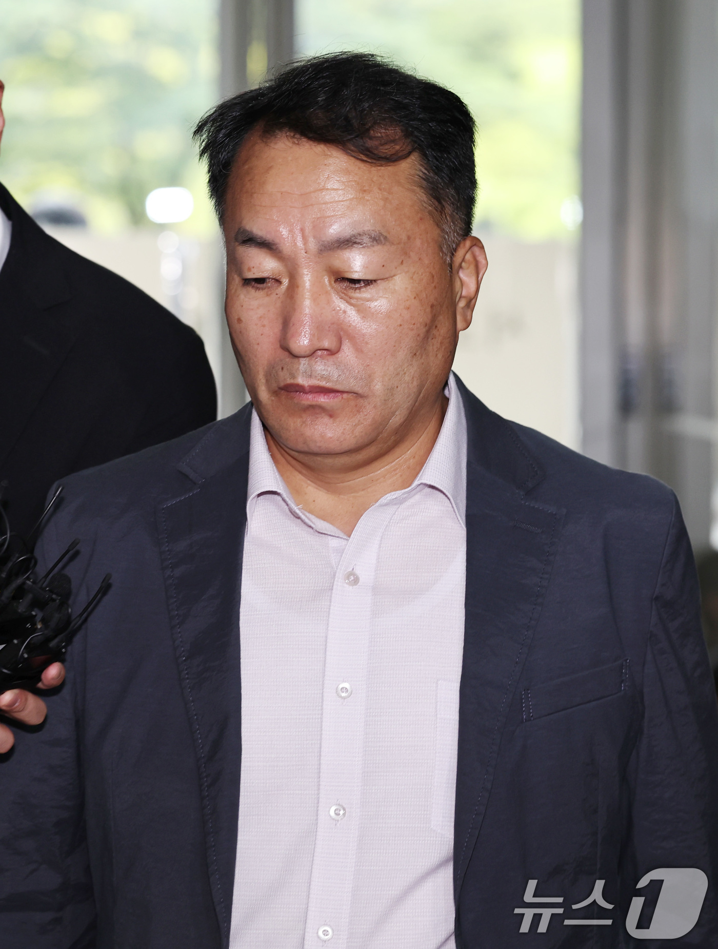 (서울=뉴스1) 구윤성 기자 = 김계환 전 해병대사령관이 24일 오전 피의자 신분으로 조사를 받기 위해 서울 서초구 순직해병특별검사팀 사무실에 출석하고 있다. 2025.9.24/뉴스1