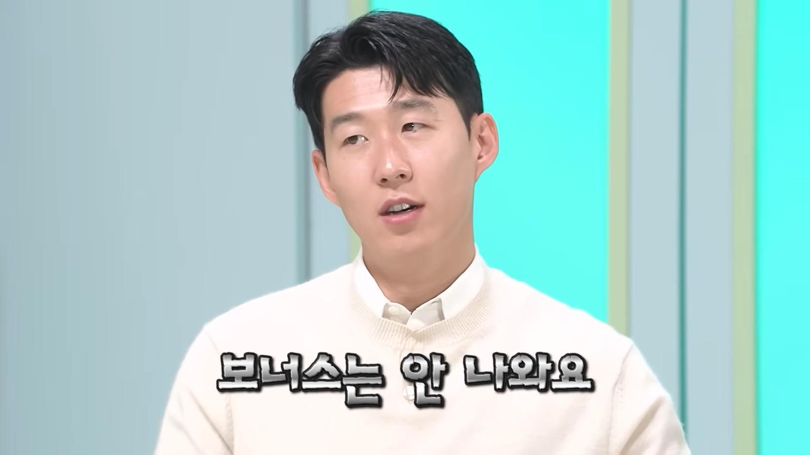 강호동이 “득점왕 같은 좋은 기록을 세우면 보너스가 나오냐”고 묻자 손흥민은 “없다. 보너스는 팀 성적에 따라 나온다. 우승이나 챔피언스리그 진출이 있어야 지급된다”고 설명했다.