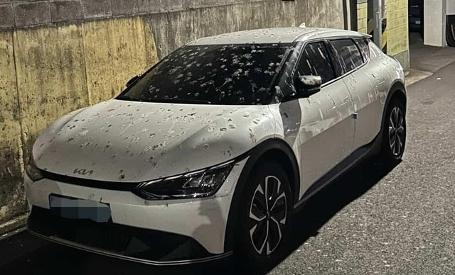 그가 공개한 사진에는 보닛과 앞유리를 포함, 차량 전체가 수백 덩이 이상의 새똥으로 뒤덮여 있는 모습이 담겼다. 이 외에도 또 다른 차량에도 보닛, 창문, 사이드미러 등에 새똥이 도배돼 있어 충격을 안겼다.