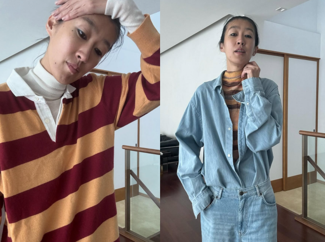 사진 속 홍진경은 청셔츠와 데님 팬츠를 매치해 깔끔한 캐주얼룩을 선보이는가 하면 스트라이프 티셔츠로 자신만의 개성 있는 스타일링으로 이목을 사로잡았다.