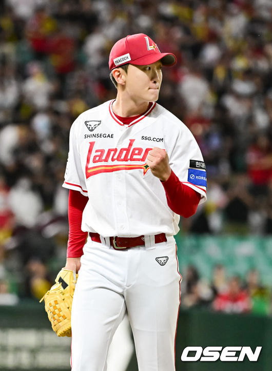 [OSEN=인천, 박준형 기자] 23일 오후 인천 SSG랜더스필드에서 ‘2025 신한 SOL BANK KBO리그’ SSG 랜더스와 KIA 타이거즈의 경기가 진행됐다.이날 경기에서 SSG은 김건우를, KIA가 김태형을 선발투수로 내세웠다.4회초 이닝종료 후 SSG 김건우 투수가 주먹을 쥐며 기뻐하고 있다. 2025.09.23 / soul1014@osen.co.kr |