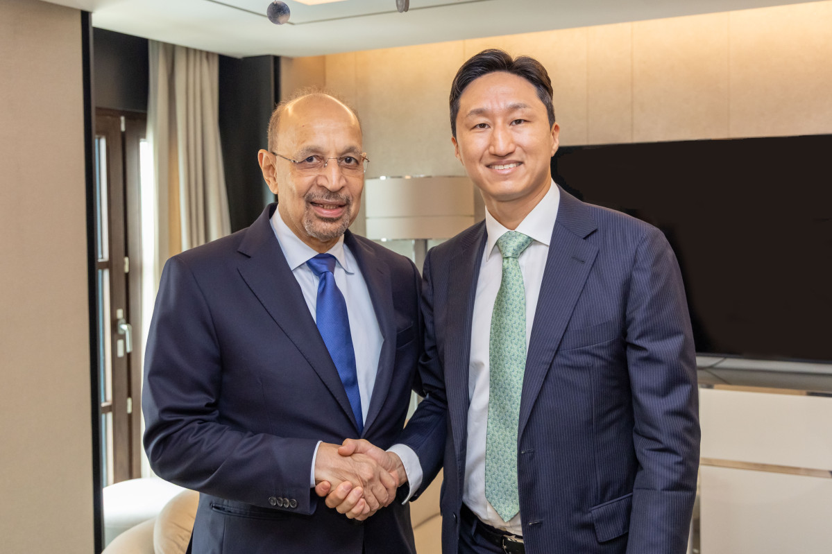 정기선 HD현대 수석부회장(오른쪽)이 25일 서울 중구 반얀트리호텔에서 칼리드 알팔리 사우디아라비아 투자부 장관과 회담을 가졌다. |