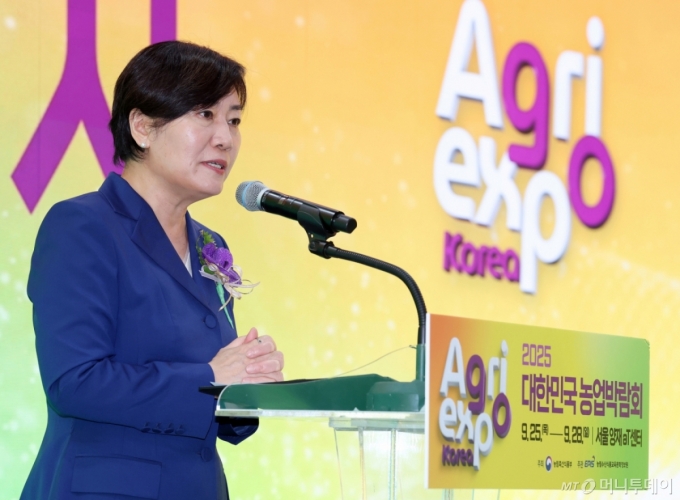 송미령 농림축산식품부 장관이 25일 서울 서초구 aT양재에서 열린 '2025 대한민국 농업박람회' 개막식에서 환영사를 하고 있다. /사진=이기범 leekb@ |