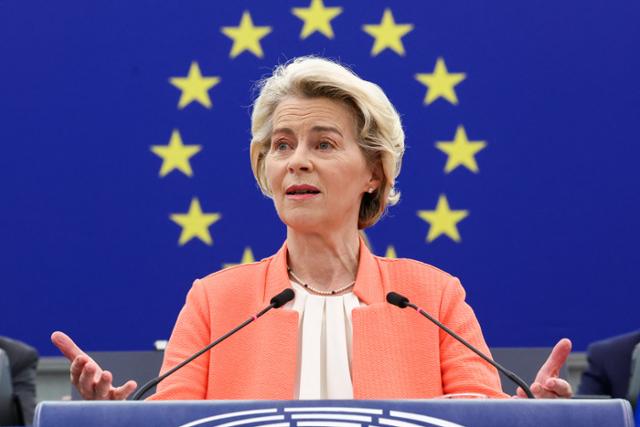 유럽 의회서 연설하는 우르줄라 폰데어라이엔 유럽연합(EU) 집행위원장. 로이터 연합뉴스 |