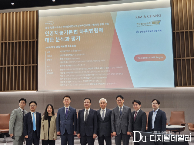 한국법제연구원은 25일 오후 서울 종로구 김앤장 크레센도 빌딩에서 김앤장 법률사무소, 한국 정보통신법학회와 'AI기본법 하위법령에 대한 분석과 평가'에 대한 학술 세미나를 공동 개최했다.